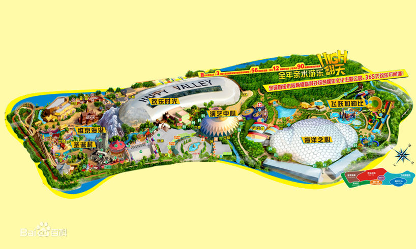 天津欢乐谷主题公园占地面积35万平方米,坐落于天津市东丽湖畔。全园分为六大主题区:演艺中心、欢乐时光、海洋之心、维京海港、圣诞村、飞跃加勒比。